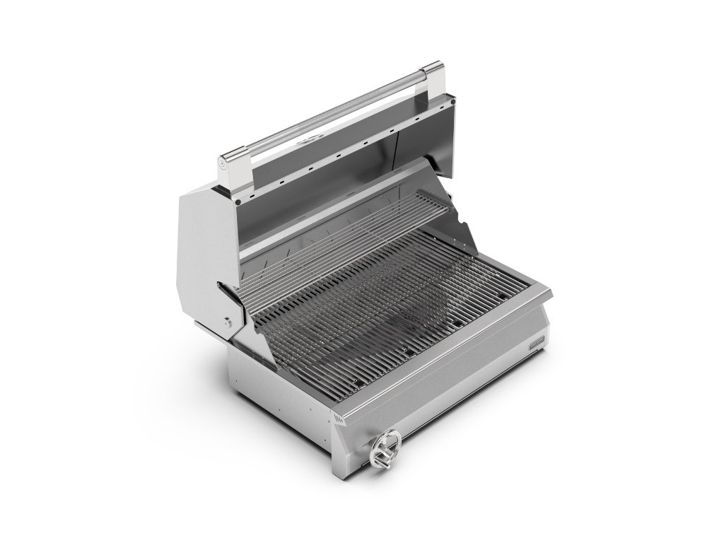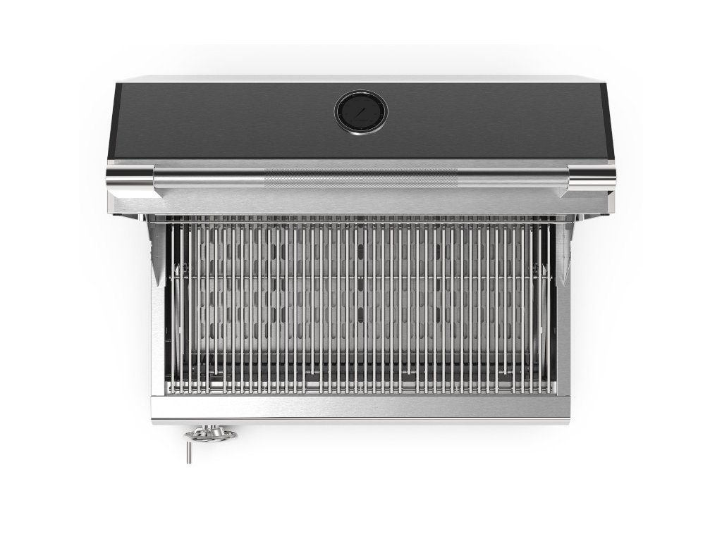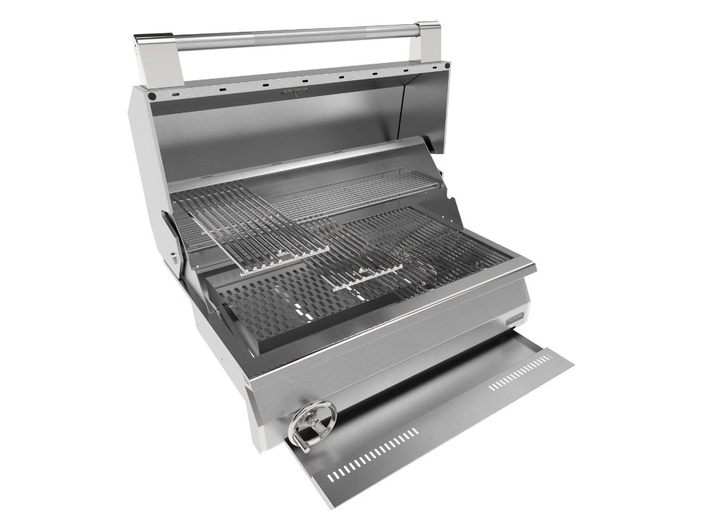 Jedinečný gril na dřevěné uhlí určený pro vestavění do kuchyňské linky. Gril je opatřen nerezovým grilovacím roštem a výškově nastavitelným palivovým roštem.