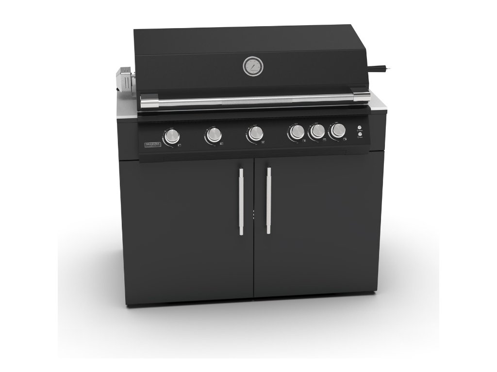 Špičkově vybavený gril s pěti nerezovými hořáky, zadním keramickým infra hořákem pro rožnění, vnitřním osvětlením grilovací plochy, masivním nerezovým grilovacím roštem.