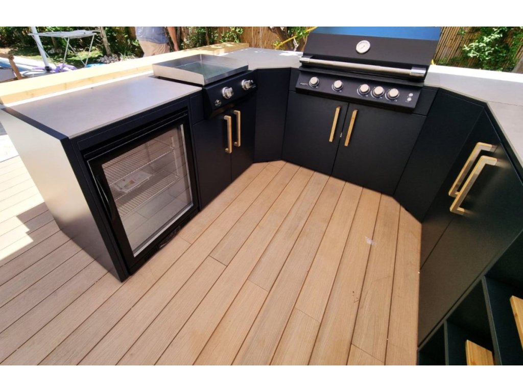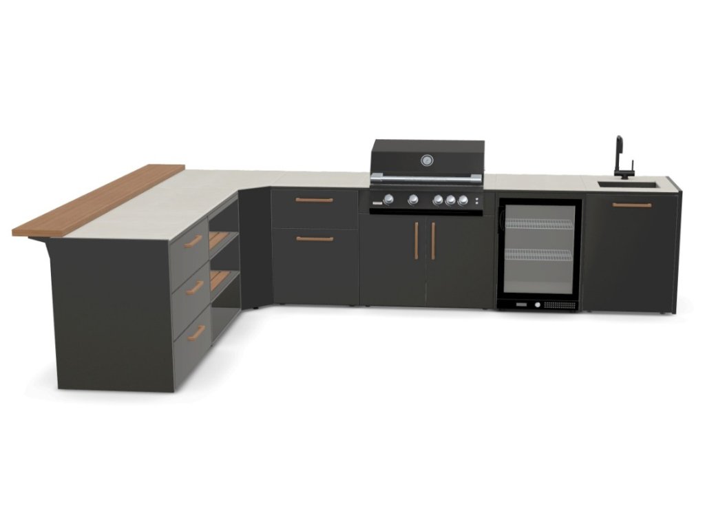 Sestavte si venkovní kuchyňskou linku dle vašich požadavků - modulární systém umožňuje libovolné uspořádání jednotlivých modulů a široké možnosti jejich konfigurace. Kuchyňskou linku lze sestavit i do tvaru L nebo U, případně můžete zvolit ostrovní uspořádání.