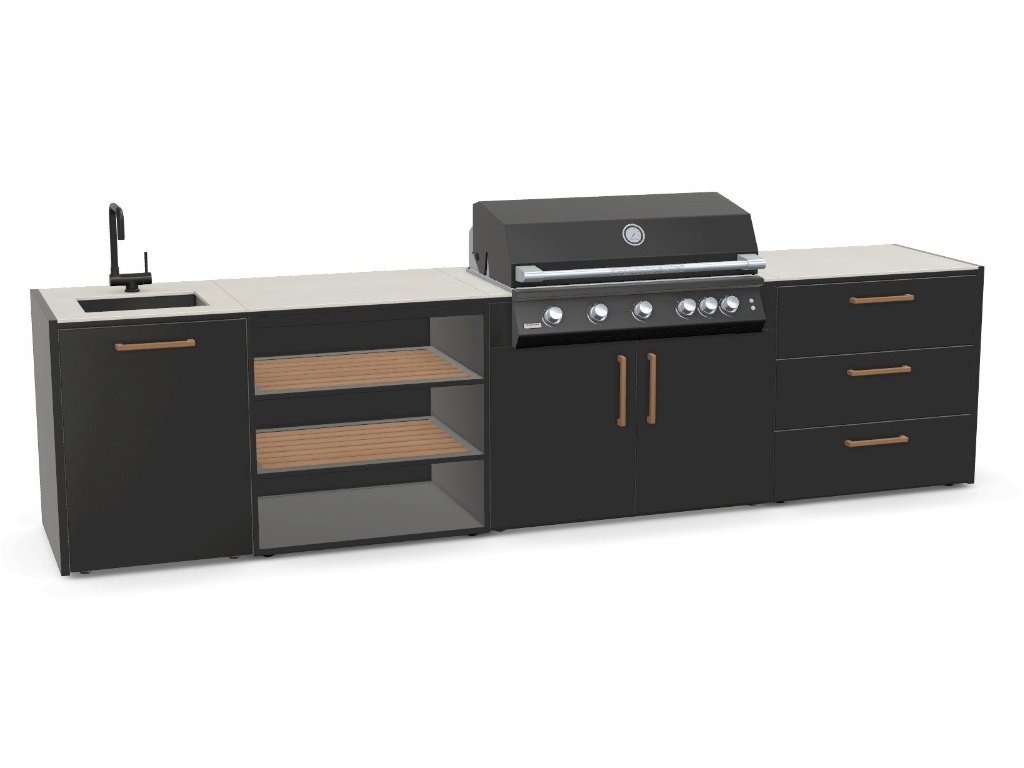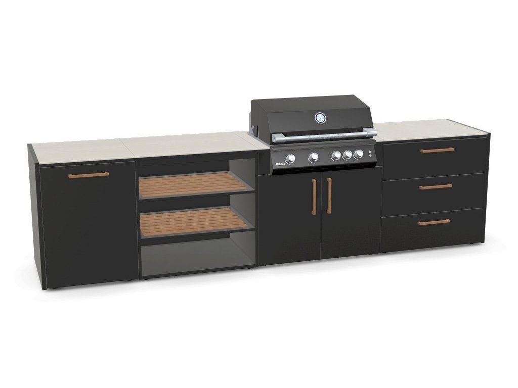 Sestavte si venkovní kuchyňskou linku dle vašich požadavků - modulární systém umožňuje libovolné uspořádání jednotlivých modulů a široké možnosti jejich konfigurace. Kuchyňskou linku lze sestavit i do tvaru L nebo U, případně můžete zvolit ostrovní uspořádání.