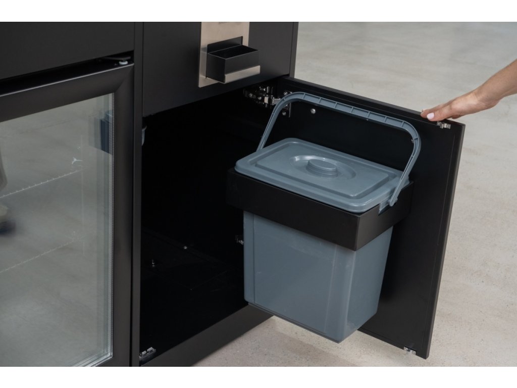 - Úložná skříňka pod dřezem: Skříňka s dvířky je doplněna odpadkovým košem s objemem 40 l. Nad dvířky je umístěn praktický otvírák lahví.