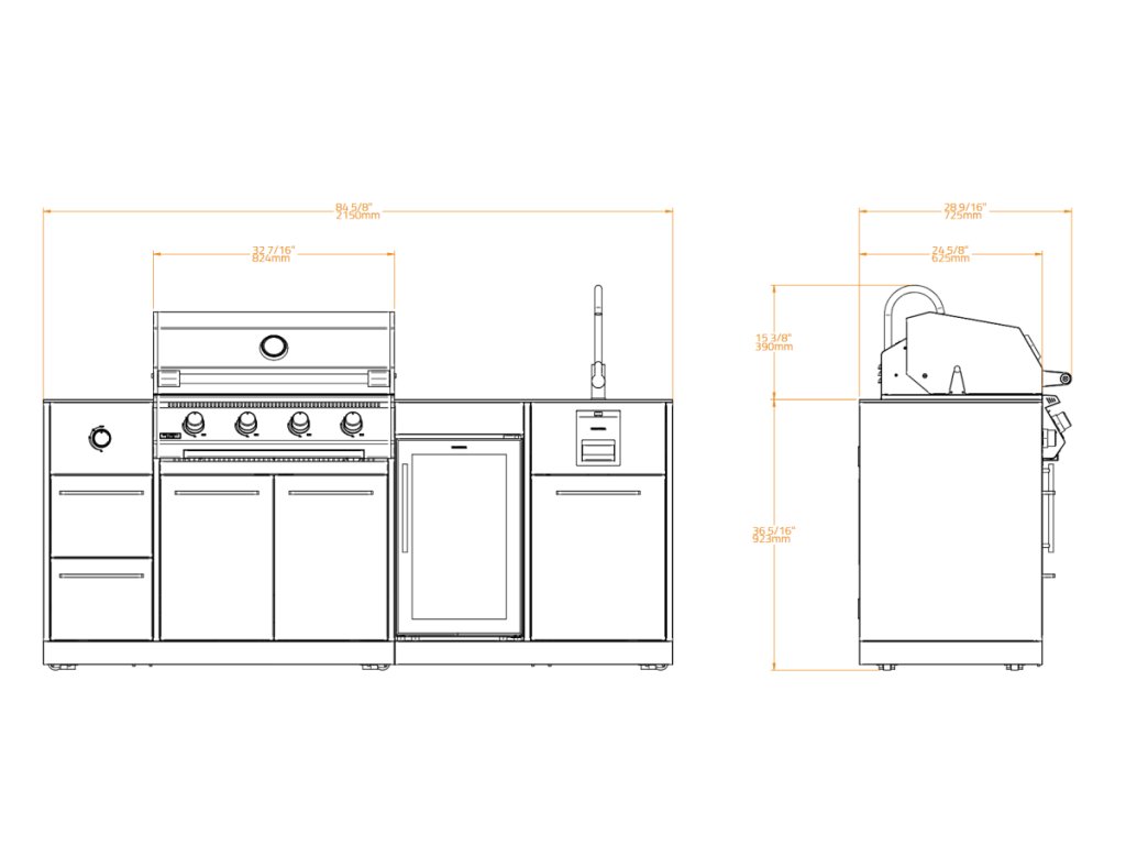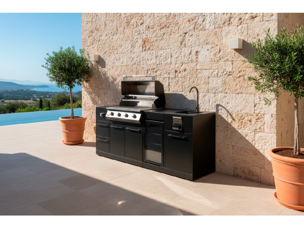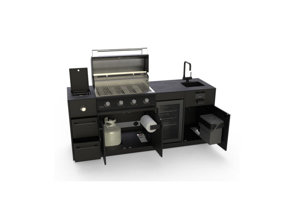 Venkovní kuchyňská linka BRABURA Lite 400 s grilem s celkovou délkou 215cm sestává z těchto modulů: