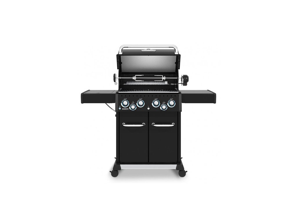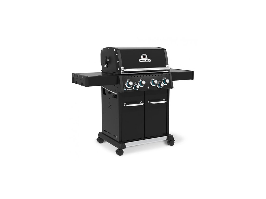 Broil King - Baron 490 Shadow v základní výbavě disponuje čtyřmi hlavními hořáky, bočním vařičem a elektrický rožněm s přídavným zadním hořákem pro rožnění. Baron 490 Shadow nabízí sílu a výkon s řadou prémiových konstrukčních řešení jako je dvojité víko, robustní oboustranné grilovací litinové rošty (ostré hrany roštu jsou ideální pro přípravu steaků, otočením získáte rošt se žlábkem, který se skvěle hodí pro grilování kuřecího masa, zeleniny a dalších drobnějších potravin), jedinečné ohřívací mřížka (tzv. druhé grilovací patro využijete především pro ohřívání pokrmů či nepřímé grilování), kryty hořáků Flav-R-Wave ™ z nerezové oceli, čtyřmi patentovanými hořáky Dual-Tube ™ z nerezové oceli či ventily s plynulou regulací výkonu Linear-Flow ™ pro přesné ovládání teploty.