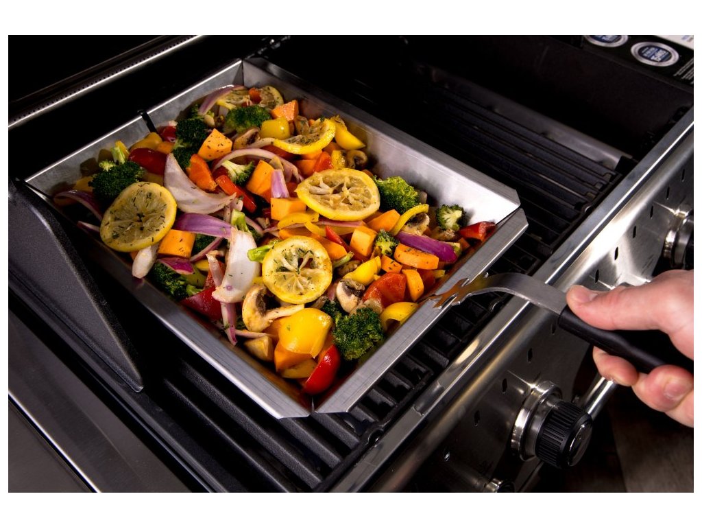 - perforování koše na zeleninu zajistí prostupování tepla a grilovaného aroma