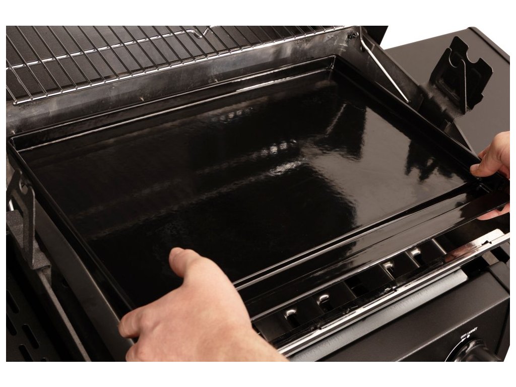 - zvýšené okraje hladké strany planchy zamezí nechtěnému odtoku vypečeného tuku z desky