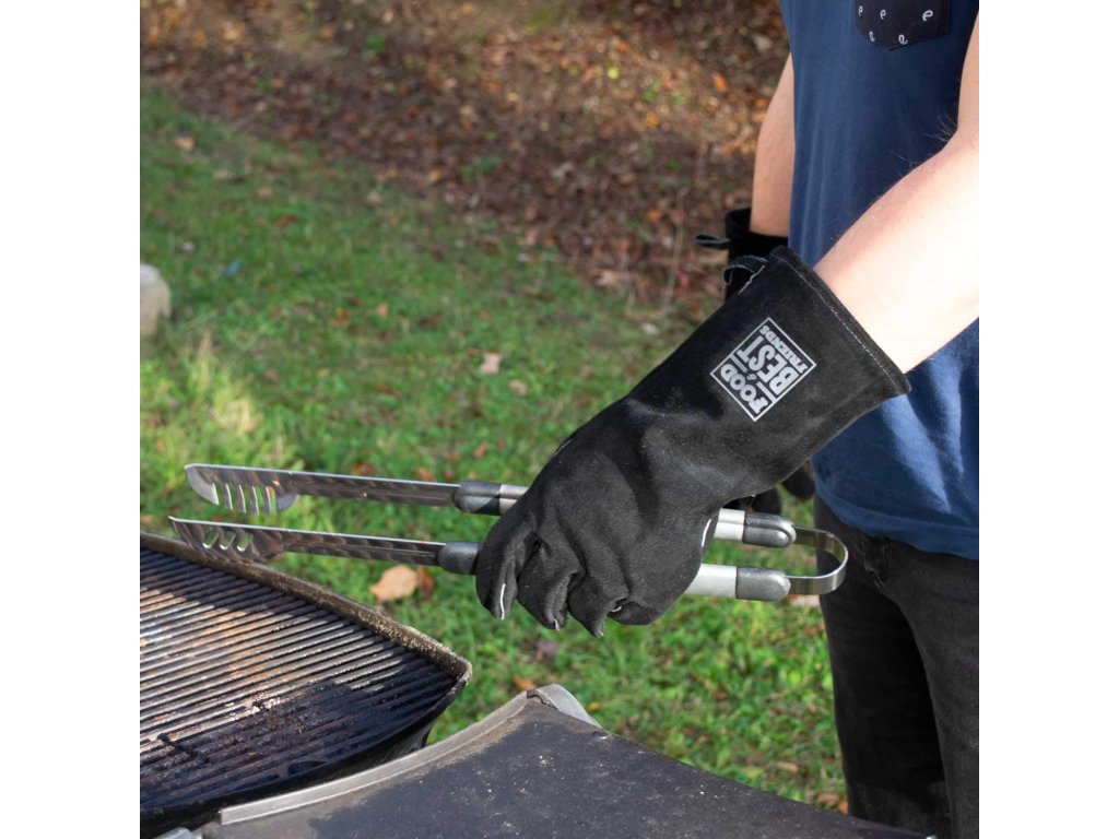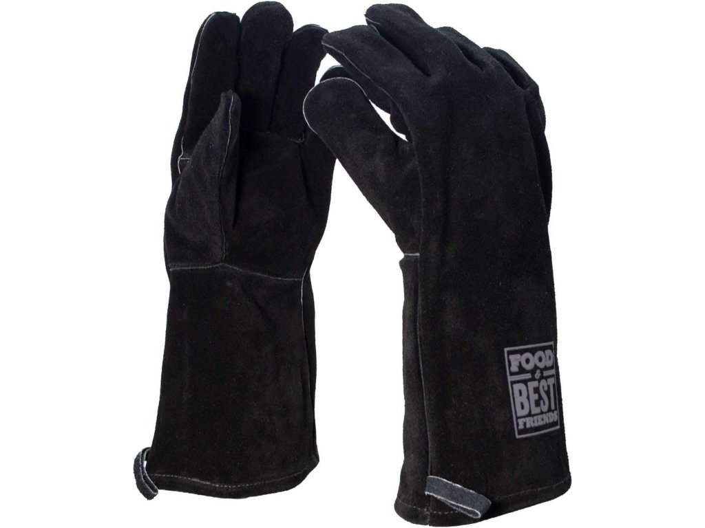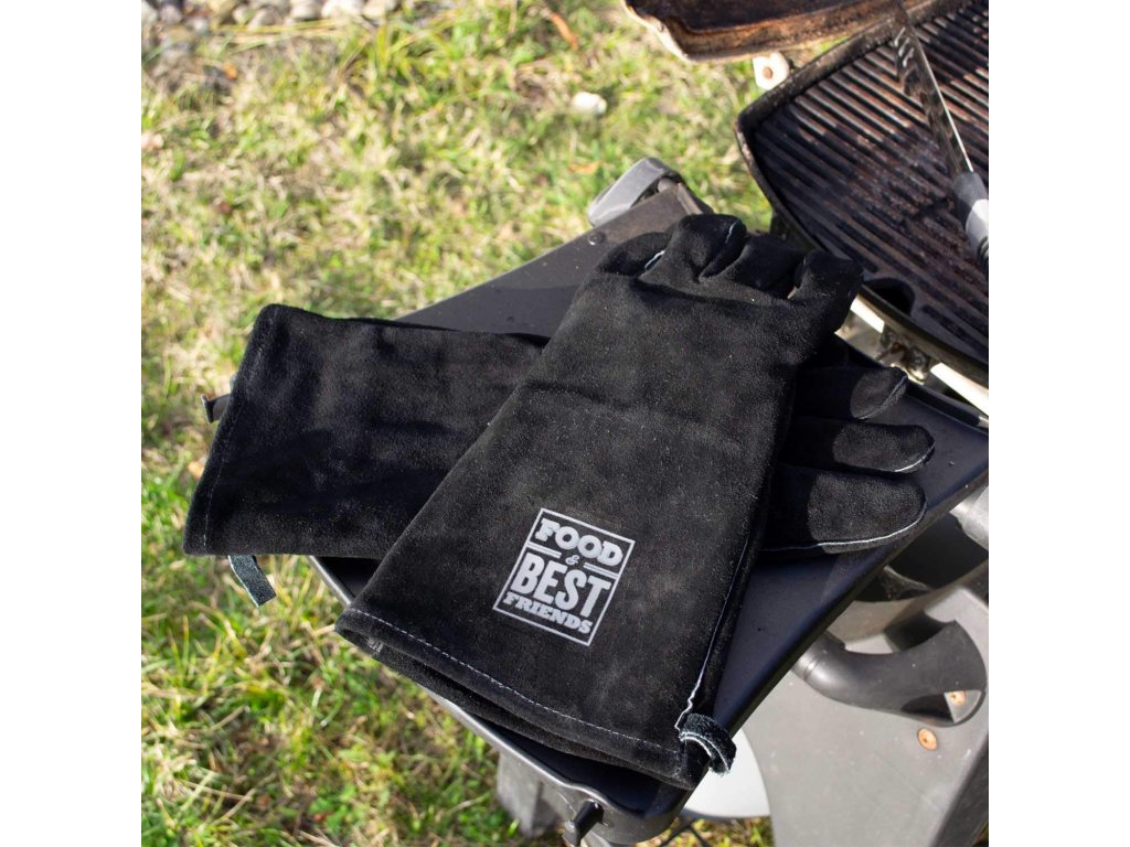 Kvalitní žáruvzdorné grilovací rukavice z hovězí kůže v elegantním černém provedení. Materiál je odolný vůči teplu a oděru a vykazuje dlouhou životnost. Díky podšívce se v rukavicích cítíte velmi pohodlně i při delším grilování. Při výběru materiálů bylo dbáno na to nejlepší, proto jsou rukavice zárukou pohodlného nošení. Snadno se nasazují i sundávají. Zavěšením na poutko budete mít rukavice vždy po ruce. Díky vysoké míře odolnosti a dlouhým manžetám vůči teplu a žáru se rukavice využijí jako grilovací rukavice, rukavice pro manipulaci s horkým nádobím při pečení v troubě nebo při obsluze krbových kamen či vložek. Balení obsahuje pár rukavic. Univerzální velikost. Délka 36 cm. Food & Best Friends díky tradici od roku 1919 na trh přináší kvalitní rukavice za velmi příznivé ceny.