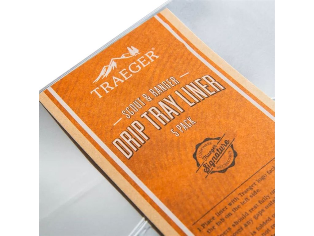 Traeger Drip Tray Liner 5 Pack jsou jednorázové hliníkové vložky určené pro odkapávací misku grilu. Usnadňují údržbu tím, že zabraňují usazování mastnoty a nečistot, což prodlužuje životnost grilu a šetří čas při čištění.