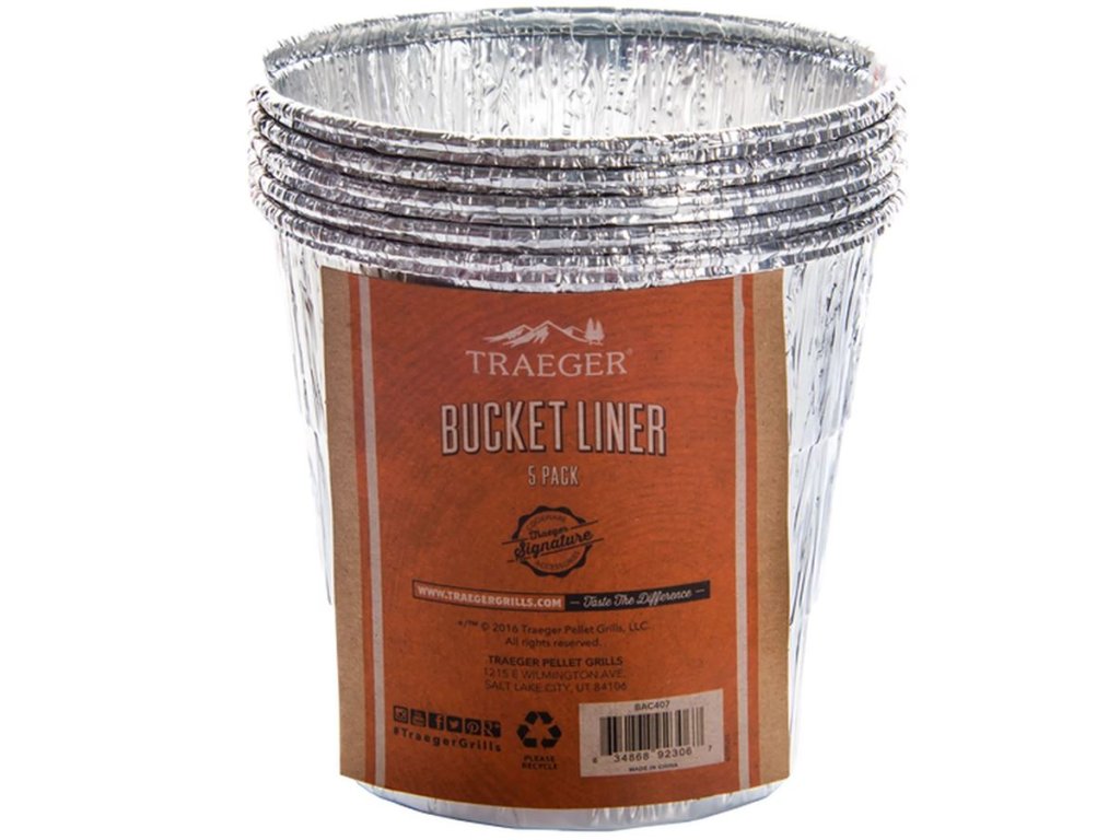 Jednorázová hliníková vložka do kbelíku peletového grilu Traeger - Bucket Liner 5 Pack usnadňuje údržbu a čištění. Pomáhá udržet kbelík čistý a prodlužuje jeho životnost, což zjednodušuje správu popela a zbytků pelet.