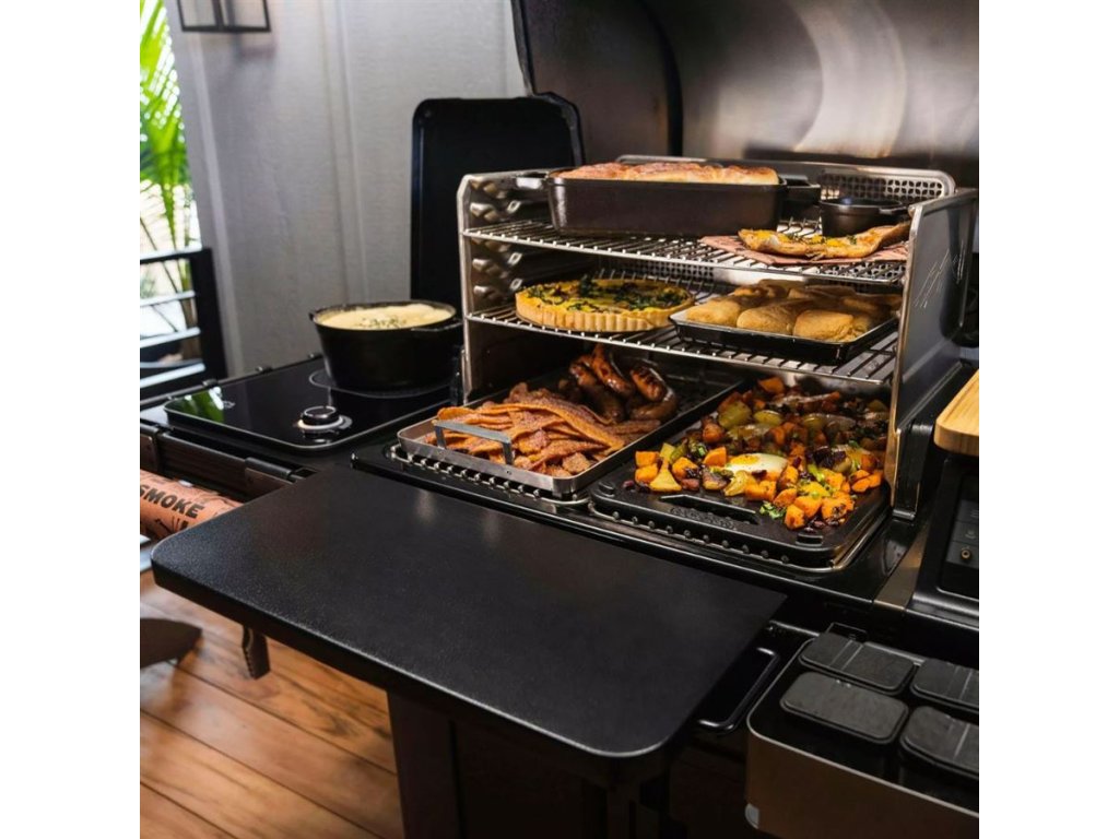 Získejte víc místa tam, kde ho nejvíc potřebujete. Police Traeger P.A.L. Pop-And-Lock® sklopná přední polička je dokonalým doplňkem ke grilům vybaveným P.A.L. Pop-And-Lock® kolejnicí. Nabízí praktický prostor pro přípravu masa, servírování, odpočinek steaků i jiné grilovací rituály. Když ji nepotřebujete, jednoduše ji sklopíte a nebude vám překážet.