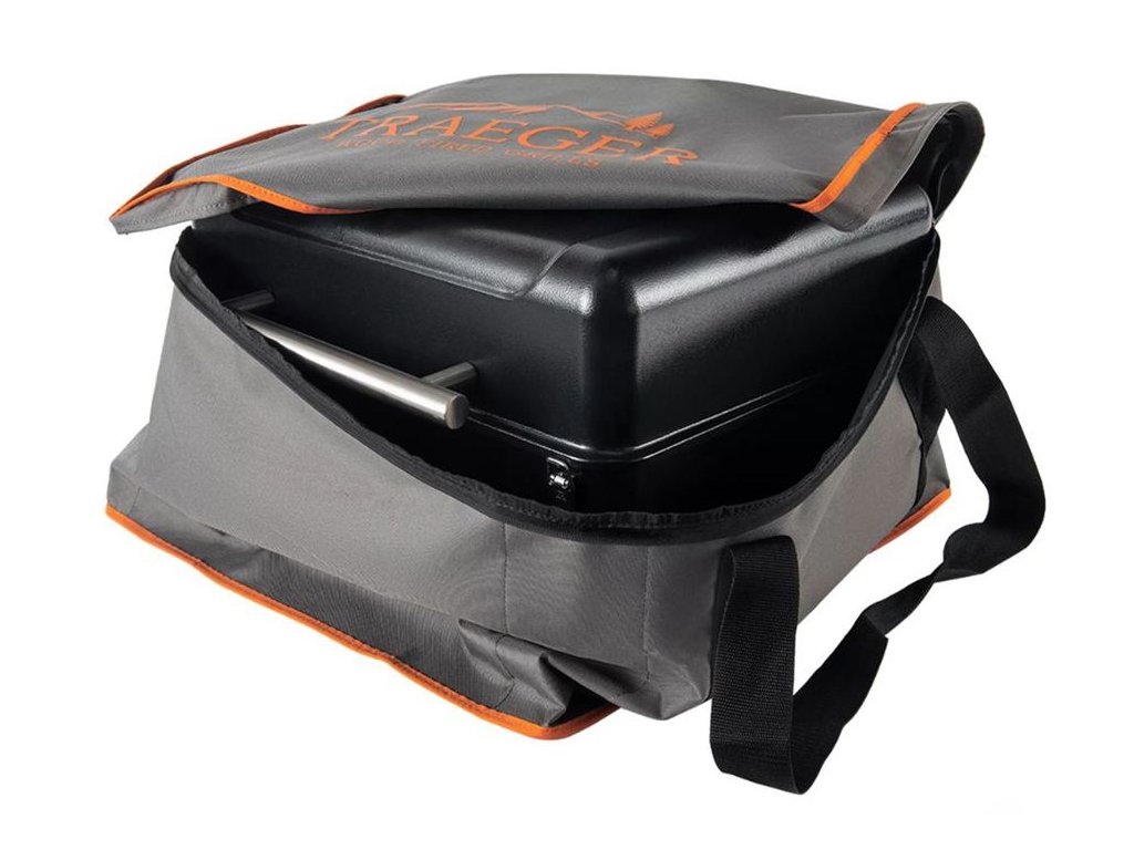 Kempingová cestovní taška určená pro peletový gril Traeger Ranger. Slouží k přepravě i skladování grilu - ochrání gril před deštěm, sněhem, prachem a dalšími nečistotami. Zip ze tří stran zajistí pohodlné ukládání grilu do tašky. S grilem v tašce se velmi dobře manipuluje díky uším na bočních stranách tašky. K výrobě tašky je použita pevná a odolná PVC tkanina s vnitřním pogumováním.
