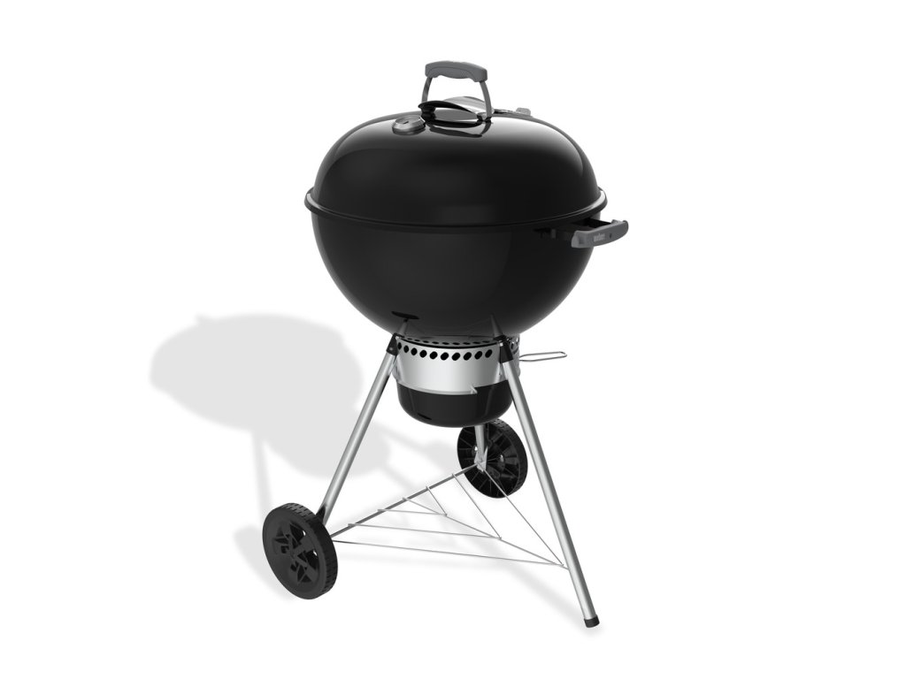 Černý ORIGINAL KETTLE s tradiční Weber siluetou, se zabudovaným patentovaným čistícím a větracím systémem One-Touch, kyblíkem k zachycení popele a integrovanou termosondou v poklopu ke správné regulaci teploty.