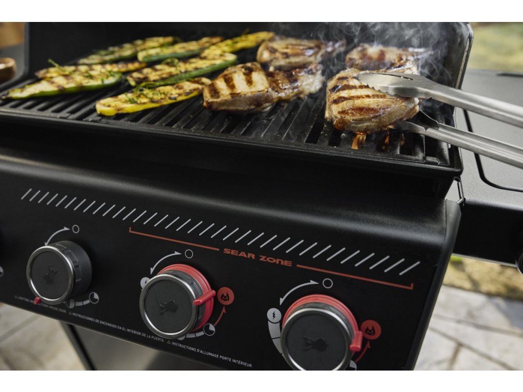 - Výkonné nerezové hořáky: 4 hořáky s velkým výkonem dokonale rovnoměrně pokryjí celou grilovací plochu. Každý hořák je ovládán samostatně. Dva hořáky jsou vybaveny funkcí Boost pro zvýšení výkonu. Navýšením výkonu až o 40 % se podstatně rozšíří oblast Sear Zone s vysokou teplotou pro rychlé zatažení masa a vytvoření výrazné a chutné grilovací mřížky na mase, rybách a zelenině.