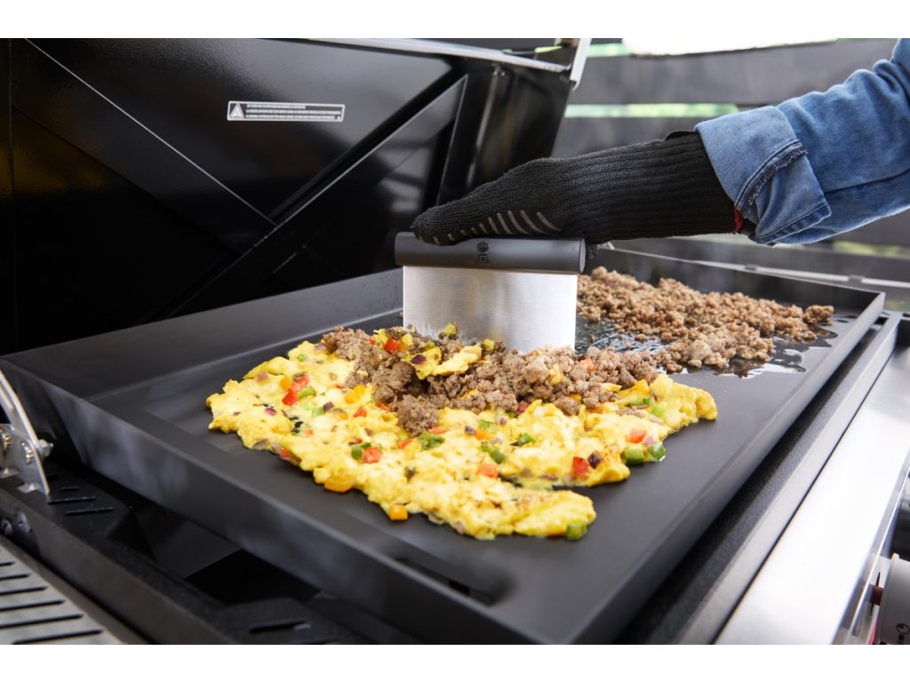 Sekáček / stěrka pro planchu - Odolná čepel z nerezové oceli. Velká rukojeť pro pohodlný úchop. Praktická stěrka i při přípravě jídel v kuchyni. Lze mýt v myčce na nádobí.